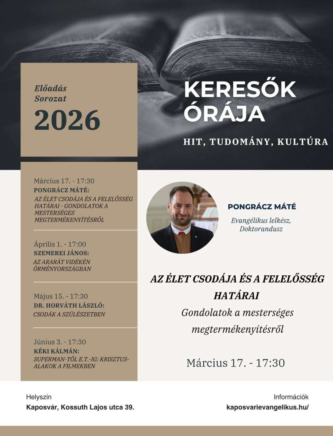 🎤 Pongrácz Máté evangélikus lelkész, doktorandusz előadása: