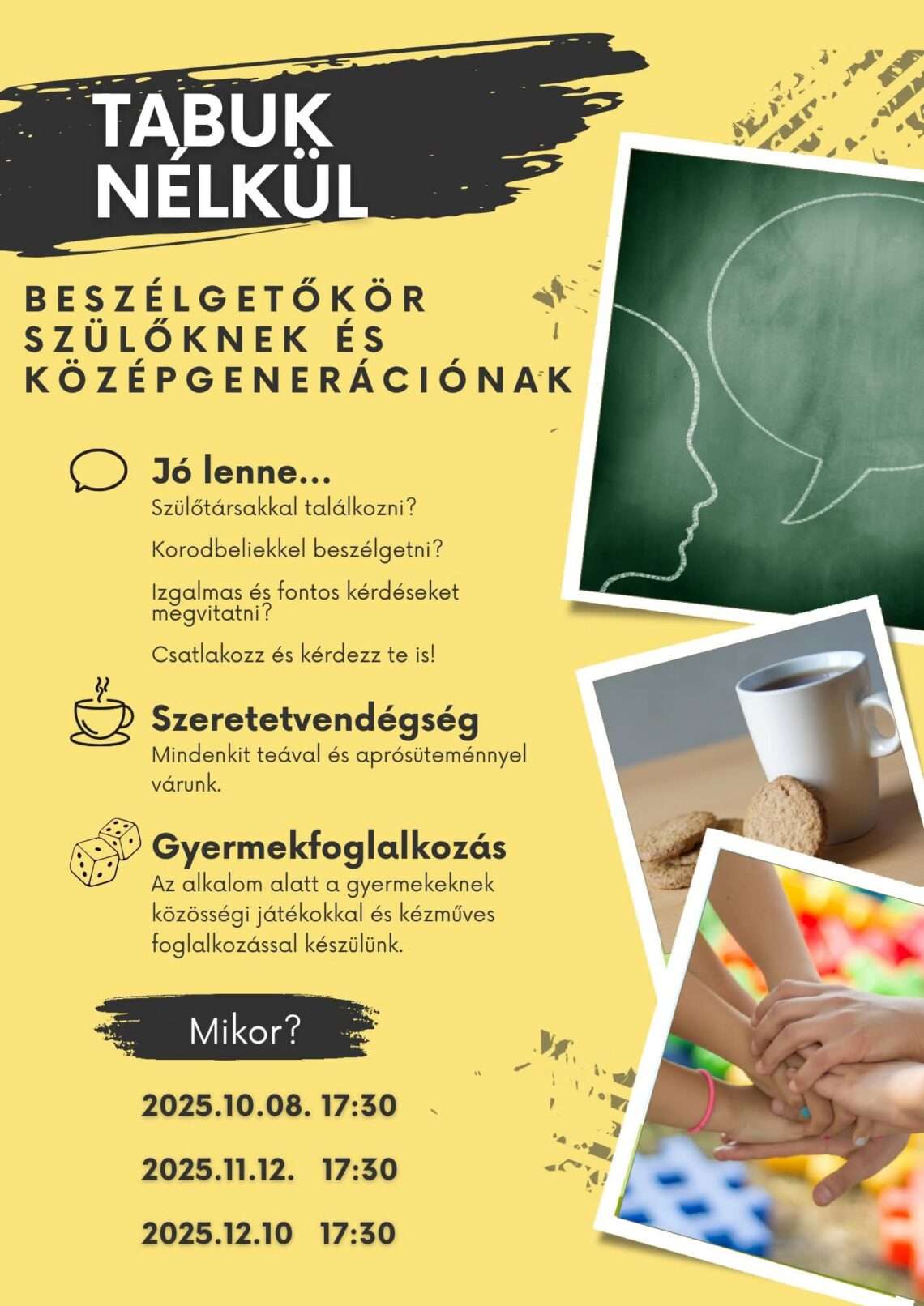 Ezen a héten is szerdán 17:30-kor várunk mind régi és új tagot! 💬 TABUK NÉLKÜL – Beszélgetőkör szülőknek és a…