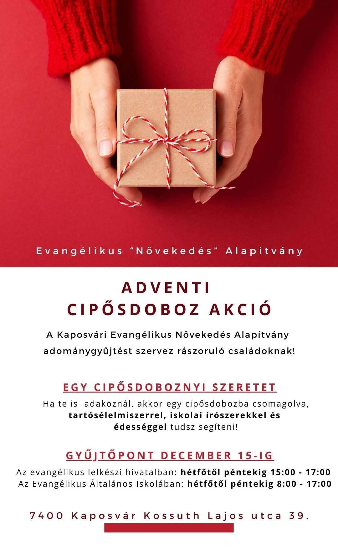 A Kaposvári Evangélikus Növekedés Alapítvány és a Kaposvári Berzsenyi Dániel Evangélikus Általános Iskola közös adománygyűjtést szervez rászoruló családok javára! 🙏🎄…
