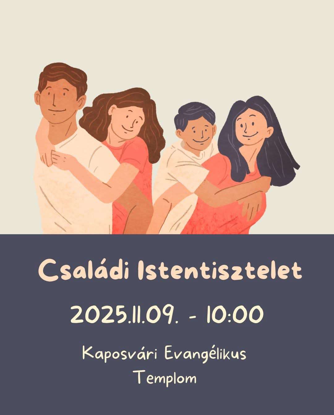 Szeretettel hívunk minden kicsit és nagyot, szülőket, gyerekeket, nagyszülőket, barátokat a következő Családi Istentiszteletre! 😀 2025. november 9. 🕙 10:00…