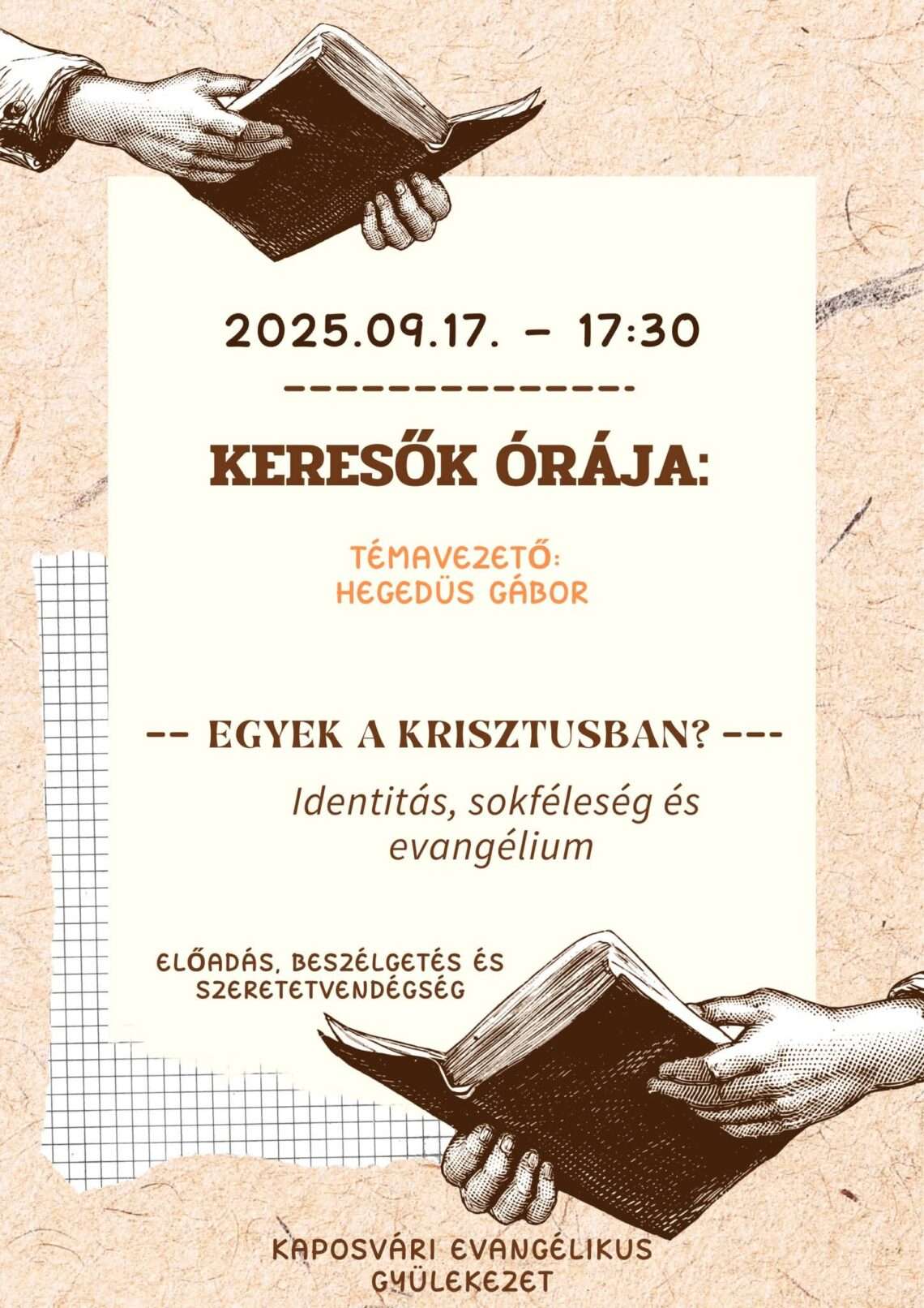 Keresők órája – Egyek a Krisztusban? Ki vagyok én? Kik vagyunk mi? Mit kezdjünk az identitás, sokféleség és különbözőség kérdéseivel?…